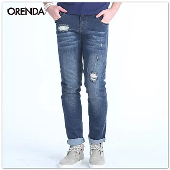 ORENDA 洗舊感破損牛仔褲34藍刻意的破洞設計呈現破壞美,洗舊單寧的質感更賦予獨特個性。